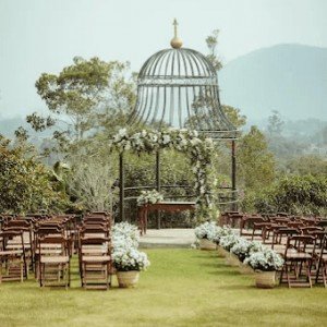 Observação: A cerimônia será ao ar livre, sobre o gramado. Para maior conforto e segurança, sugerimos evitar saltos muito finos ou muito altos.